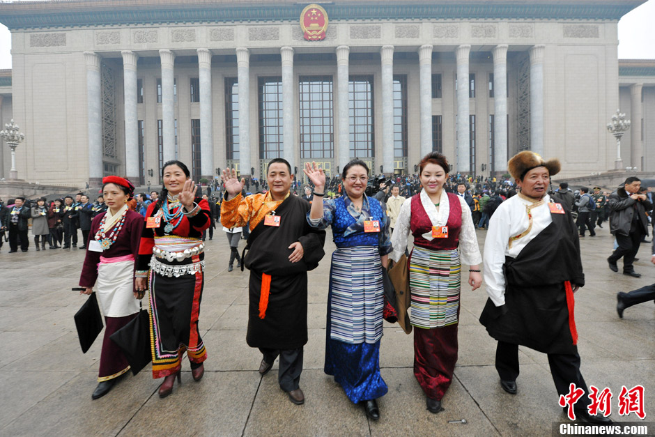 政协十二届一次会议闭幕 委员走出会场合影留念