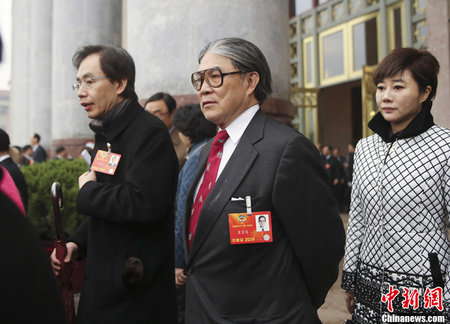 3月12日上午,全国政协十二届一次会议在北京人民大会堂闭幕。霍震霆会后走出人民大会堂。中新社发 赵隽 摄