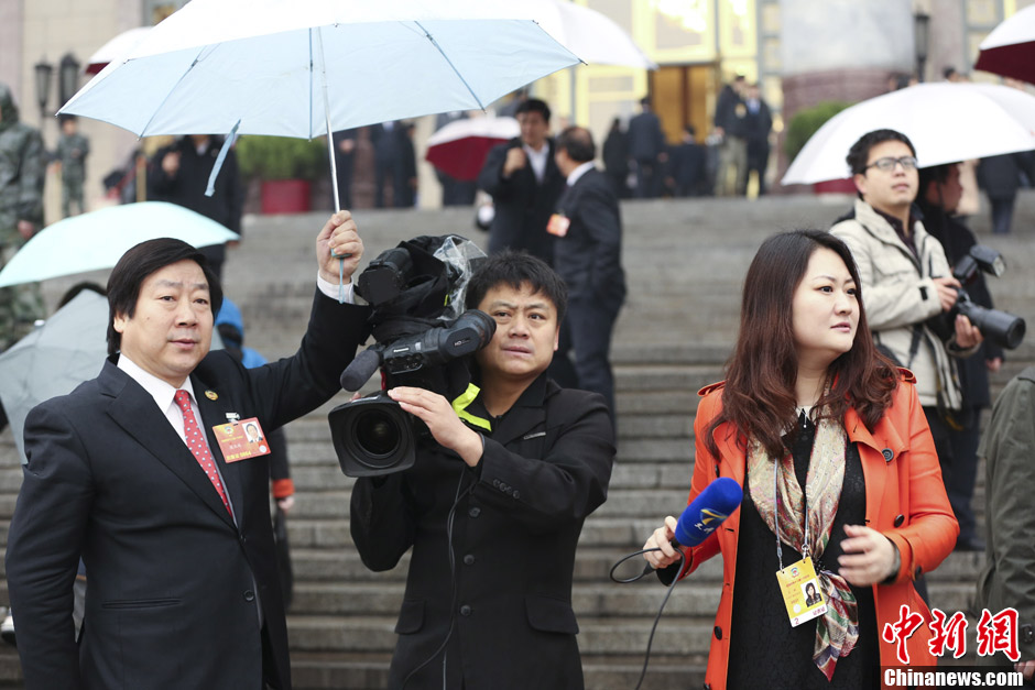 两会花絮:潘庆林委员为记者撑伞