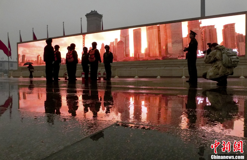 3月12日,全国政协十二届一次会议在北京人民大会堂闭幕。当日,北京迎来降雨天气。中新社发 廖攀 摄