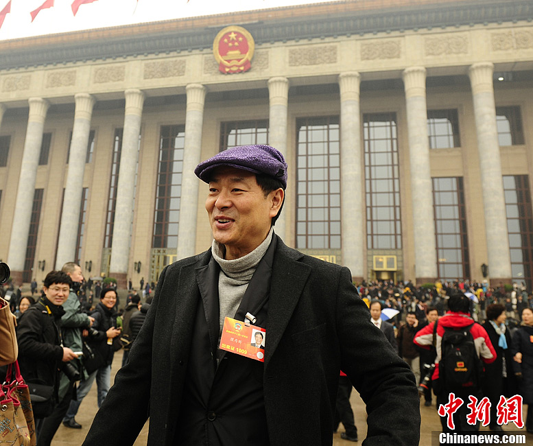 3月12日上午,全国政协十二届一次会议在北京人民大会堂闭幕。濮存昕会后神情轻松地走出人民大会堂。中新社发 侯宇 摄