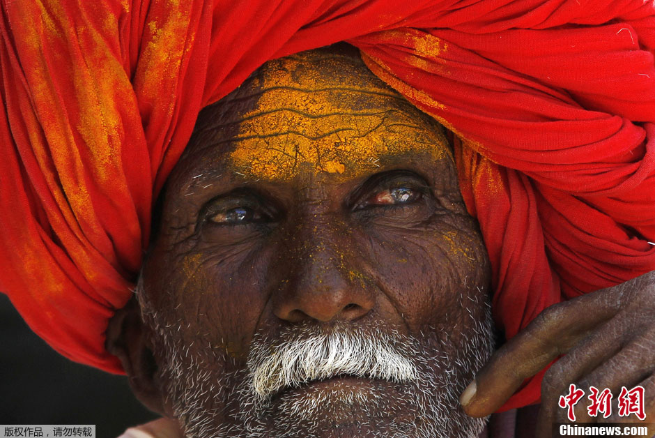 当地时间3月11日,印度马哈拉施特拉,为迎接“Somavati Amavasya”日(即正逢周一的满月之日),当地印度教教徒在街头撒黄色粉末进行庆祝。