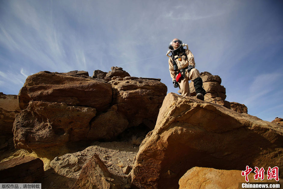 据当地时间3月11日发布的图片显示,当地时间3月2日,美国犹他州火星沙漠研究站,工作人员身穿太空服在模拟火星居留地进行采集地质样本等研究活动。