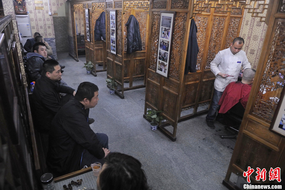 2013年03月13日是农历二月初二,中国传统民俗有着“二月二 剃龙头”的习俗,民间认为这天剃头意味着新年新气象,一定会带来好运。图为北京一家名为“金板寸”的老字号理发店,清早便开始有市民陆续排队剃头。店内排队等待理发的市民。中新社发 崔楠 摄