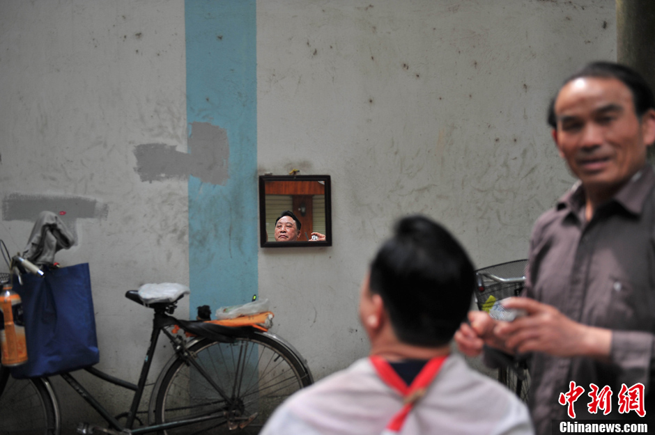 3月13日是中国农历“二月二”,中国人在这一天有“剃龙头”的习俗。图为3月13日,广西南宁,市民在一间理发店内理发。中新社发 洪坚鹏 摄
