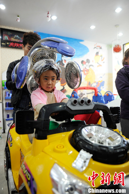 3月13日是中国农历“二月初二”,民间素有“剪龙头”的习俗,很多人在这一天都来到理发店剪头,给自己讨个好彩头。图为长春市一家儿童美发店内,一位小朋友在汽车椅子上烫发。张瑶 摄