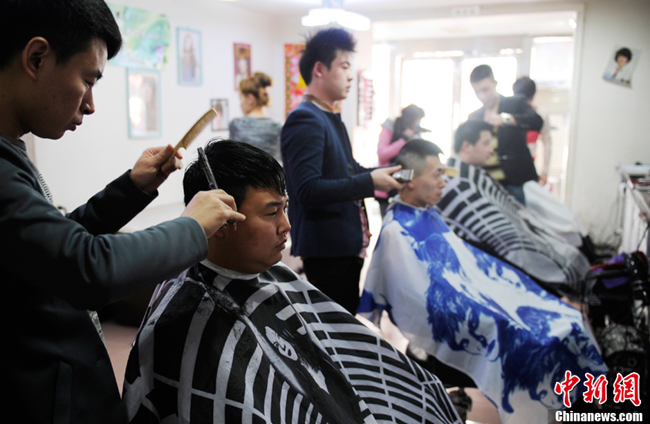 3月13日是中国农历“二月初二”,民间素有“剪龙头”的习俗,很多人在这一天都来到理发店剪头,给自己讨个好彩头。图为长春市各大理发店均人满为患。张瑶 摄
