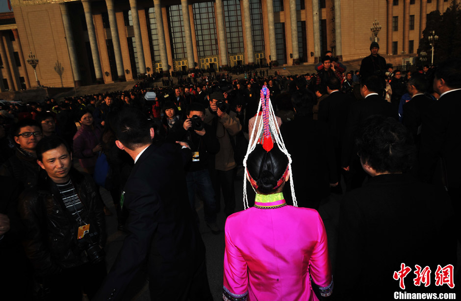 3月5日,北京,第十二届全国人民代表大会第一次会议在人民大会堂开幕,一名少数民族女士前往大会堂。魏尧 摄