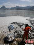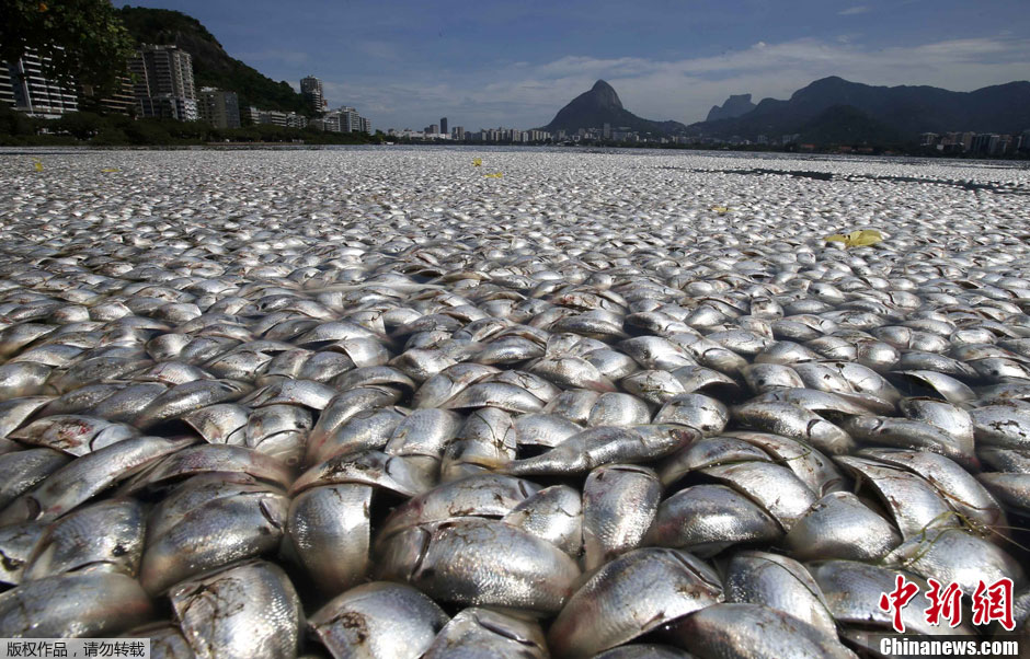 巴西里约湖泊现大量死鱼 气味腐臭难闻