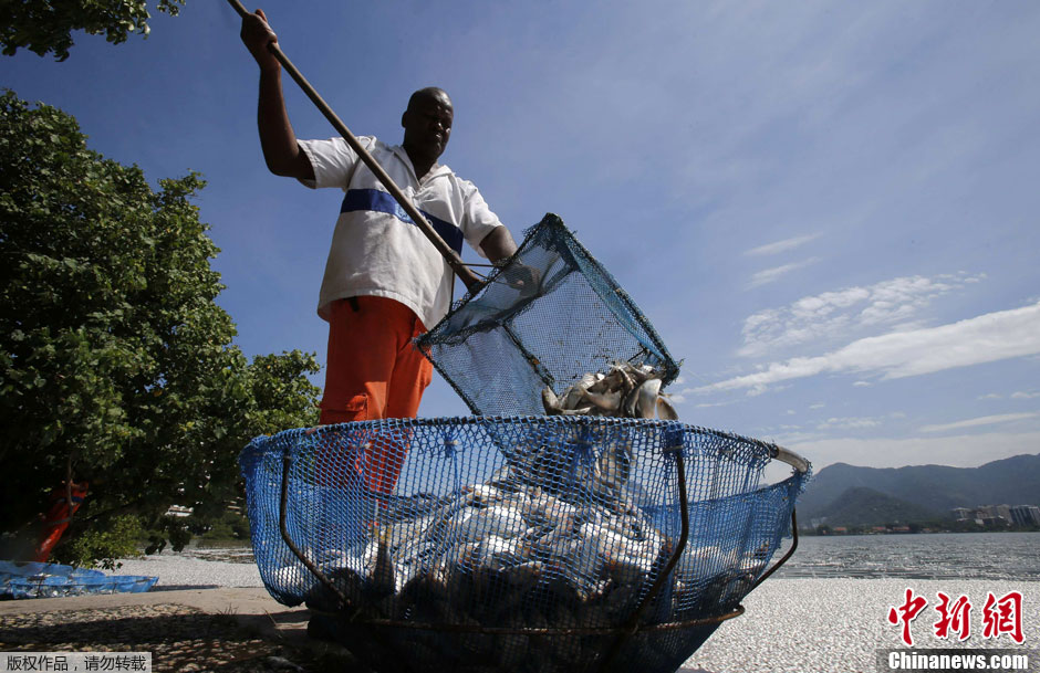 巴西里约湖泊现大量死鱼 气味腐臭难闻