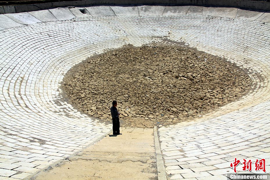 3月14日,云南元谋县姜驿乡海子边村,由中国红十字基金会在当地援建的一处蓄水池因旱情严重已干涸见底,当地红十字会会长现场查看灾情。据介绍,云南迄今已连续4年干旱,灾情严重。中国红十字基金会为此在当地开展“天使之旅——春雨行动”,组织志愿者前往重灾区进行入户灾情调查。孙自法 摄