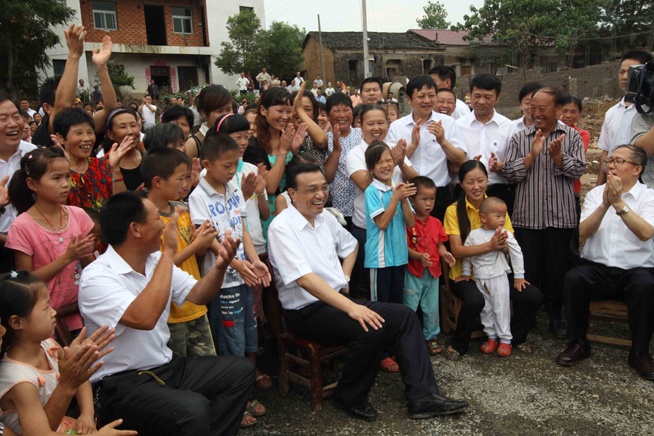 2012年7月13日至14日,李克强在湖北考察。这是7月14日,李克强来到地处大别山区的红安县陈升庙村,看望慰问困难群众,与大家亲切交谈。 刘卫兵 摄