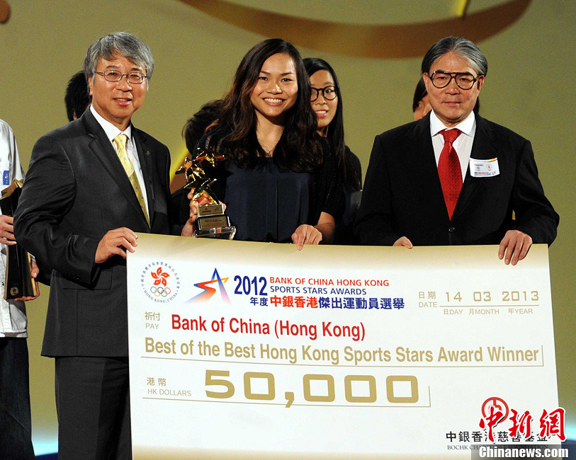 2012年度香港杰出运动员选举14日晚揭晓,有香港“牛下女车神”之称的香港单车运动员李慧诗凭藉2012年的优秀战绩,首次入选“香港杰出运动员”,并夺得“星中之星香港杰出运动员大奖”的最高荣誉。中新社发 谭达明 摄
