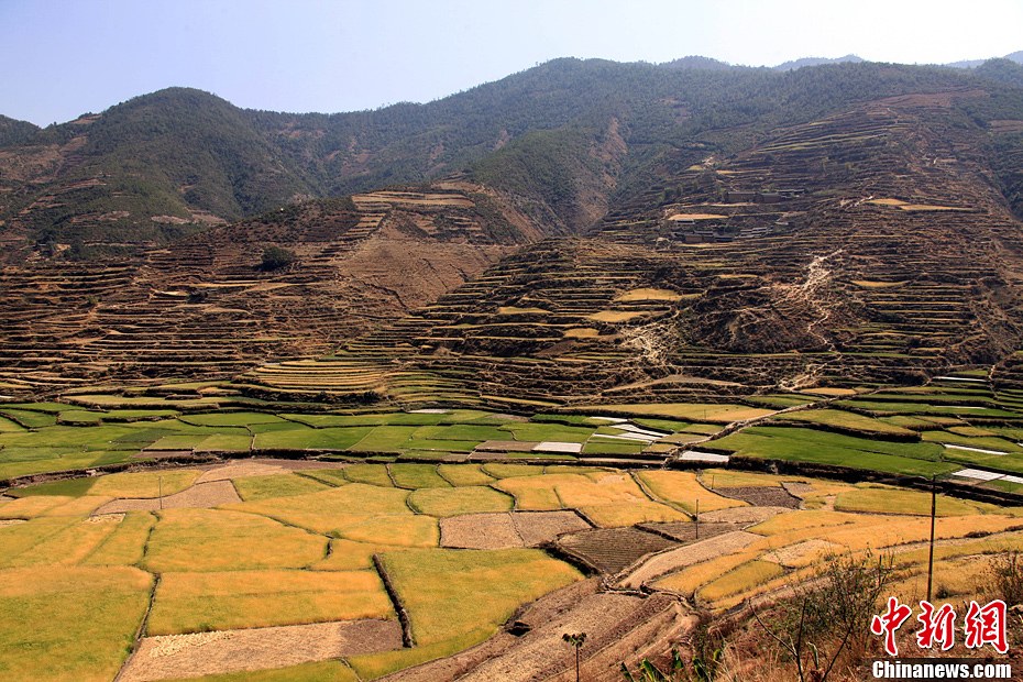 3月15日,云南楚雄州永仁县中和镇直苴村一处梯田,连年旱情对春耕农作影响很大。据介绍,云南迄今已连续4年干旱,灾情严重。中国红十字基金会为此在当地开展“天使之旅——春雨行动”,组织志愿者前往重灾区进行入户灾情调查。孙自法 摄