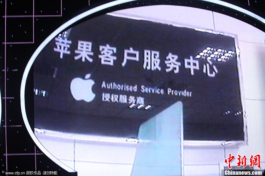 3月15日,2013年央视315晚会举行。央视3·15晚会上,央视曝光苹果公司在中国售后政策有歧视之嫌,全球整机交换都是整机全换,唯有中国不给换后盖,就为了避开新机保修期重新计算的政策。图片来源:CFP视觉中国