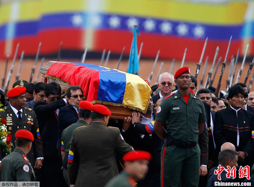 3月15日,委内瑞拉已故总统查韦斯的遗体准备移送至军事博物馆安放,大批民众聚集在首都加拉加斯街头,最后送别查韦斯。另据外媒报道,委内瑞拉官方表示,不会永久保存查韦斯遗体。
