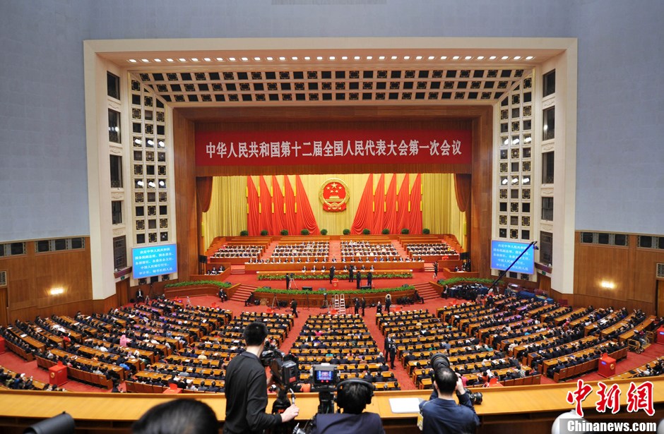 3月16日下午,第十二届全国人民代表大会第一次会议在人民大会堂举行第六次全体会议,决定国务院副总理、国务委员、各部部长、各委员会主任、中国人民银行行长、审计长、秘书长的人选;表决第十二届全国人民代表大会各专门委员会主任委员、副主任委员、委员名单草案。中新网记者 金硕 摄