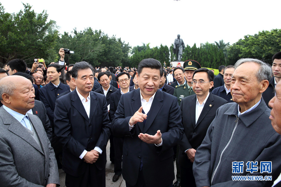 2012年12月8日,习近平在广东深圳莲花山向邓小平像敬献花篮后与现场群众交谈,强调坚定不移改革开放。兰红光 摄 图片来源:新华网