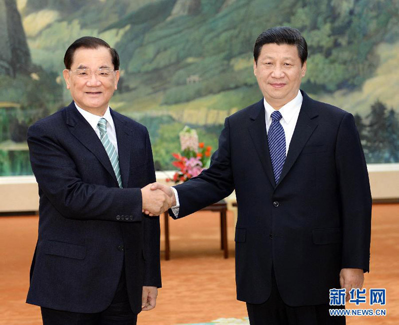 2013年2月25日,习近平在北京人民大会堂会见中国国民党荣誉主席连战。李涛 摄 图片来源:新华网