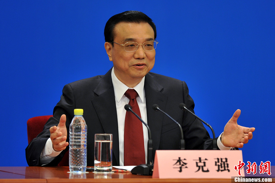 3月17日上午,十二届全国人大一次会议闭幕后,国务院总理李克强在人民大会堂三楼金色大厅会见采访十二届全国人大一次会议的中外记者并回答记者提出的问题。中新网记者 金硕 摄