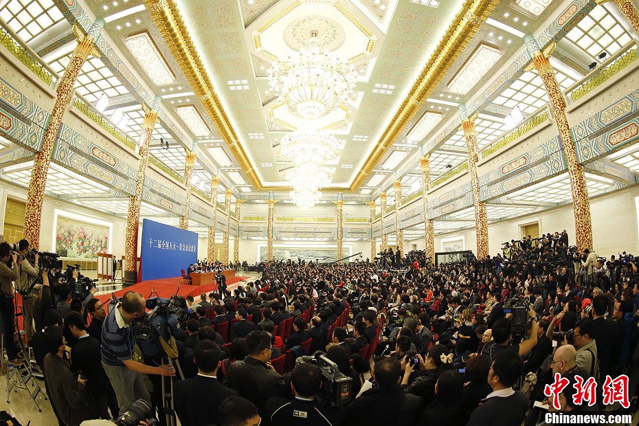 3月17日,中国国务院总理李克强和副总理张高丽、刘延东、汪洋、马凯在北京人民大会堂金色大厅会见采访十二届全国人大一次会议的中外记者,并回答记者提问。中新社发 盛佳鹏 摄