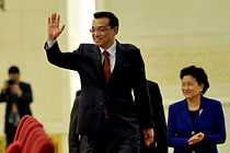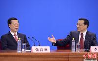 3月17日,中国国务院总理李克强等在北京人民大会堂金色大厅会见采访十二届全国人大一次会议的中外记者,并回答记者提问。中新社发 贾国荣 摄