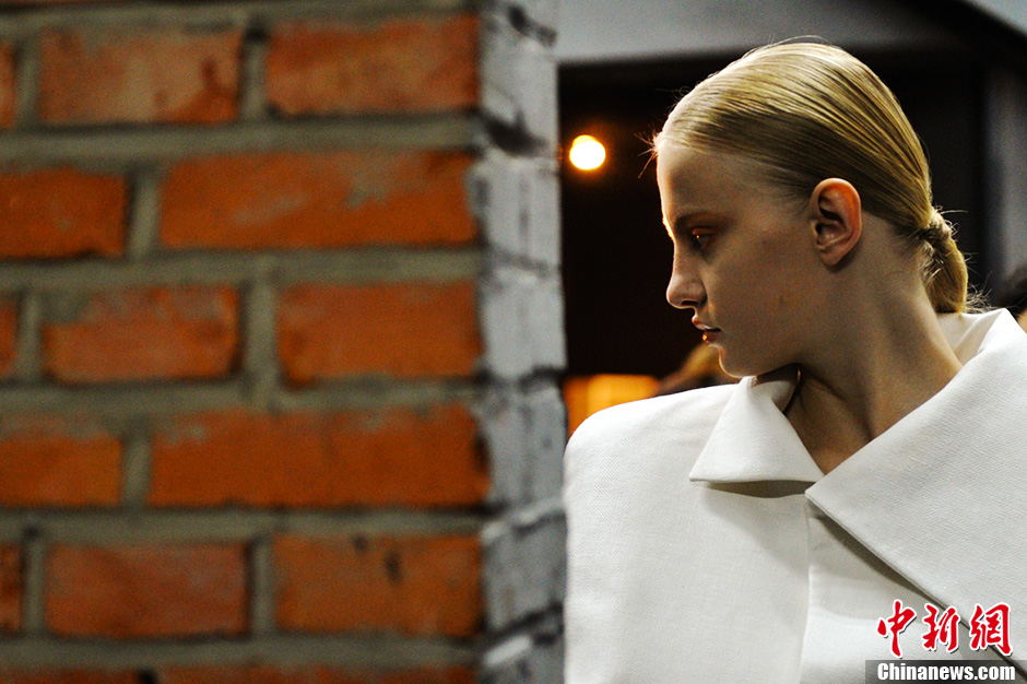 图为外籍模特在后台候场。中新网记者 金硕 摄