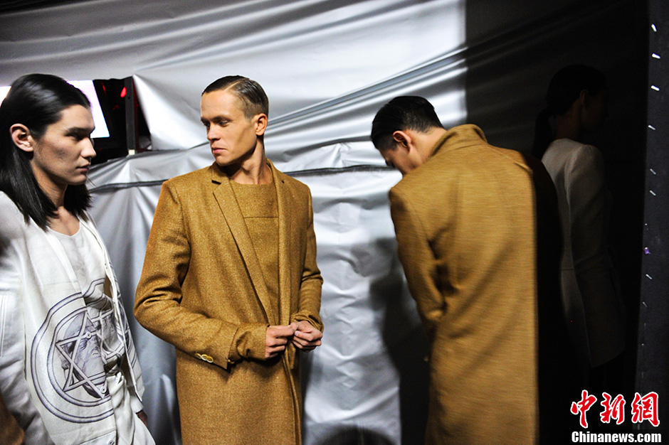 图为模特们在后台备场。中新网记者 金硕 摄