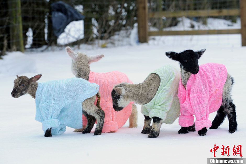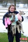 英国遭遇最冷春天 羊羔穿上羊毛外套
