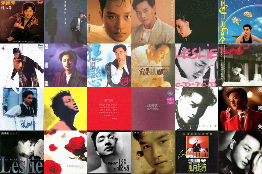 1977年他凭《American Pie》获丽的电视亚洲歌唱大赛香港区亚军进而出道,并被“华侨日报”评为最有前途新人奖,随后加入丽的电视,在多部连续剧中担任主角。1978年他推出了首张英文唱片《Day Dreaming》。1979年推出首张粤语唱片《情人箭》。1982年他主演的电影《烈火青春》为他赢来了第一个金像奖影帝提名,这部电影也成为新浪潮电影的代表作和金像奖评选的“百年百部最佳华语片”之一。图为张国荣部分专辑拼图。