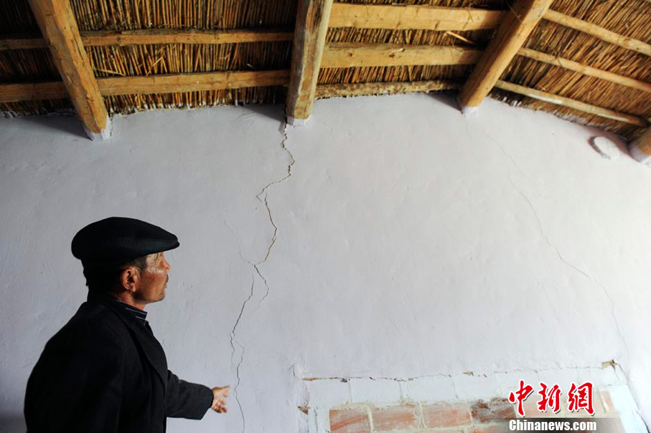 3月29日13时01分,新疆昌吉市、乌鲁木齐市和乌鲁木齐县交界处(北纬43.4度,东经86.8度)发生5.6级地震,震源深度13公里,地震震中位于新疆昌吉市庙尔沟乡附近。图为该乡牧民定居点一牧民房屋在地震后墙出现裂缝。刘新 摄