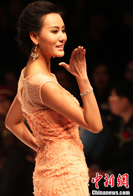 3月30日,正在北京举行中国国际时装周(2013/2014秋冬系列)举行Sexy&Party名瑞·蔡中涵婚纱礼服发布会,图为模特展示精美婚纱礼服。中新社发 钱兴强 摄