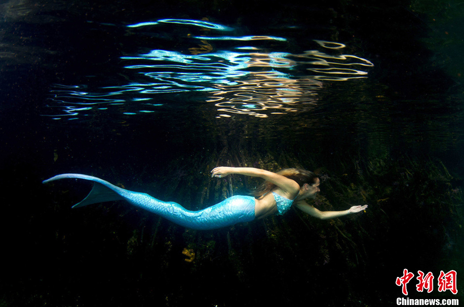 当地时间2013年4月1日报道,来自美国洛杉矶的林登-沃尔伯特(Linden Wolbert)是一名全职专业“美人鱼”,她今年32岁,经常前往世界各地进行水下“美人鱼”的表演。林登水性极好,可以潜到水下35米处,并能在水下憋气5分钟,她利用美貌和极好的水性来宣传海洋保护。林登平时表演所使用的生物流体动力学鱼尾重达16公斤,花了7个月、耗费1万英镑才打造完成。图片来源:东方IC 版权作品 请勿转载