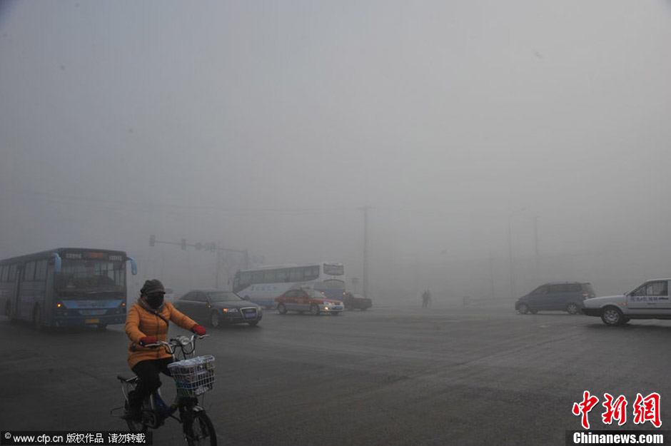 沈阳遭遇大雾天气 城市隐没雾中如幻境