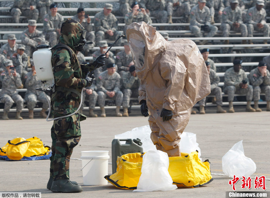 4月4日,2004年起撤出韩国的美国陆军第23化学大队重返韩国,在首尔近郊的美军基地举行了队旗升旗仪式,并进行装备展示。这支化学部队主要负责应对核武器、生化武器等大规模杀伤性武器。