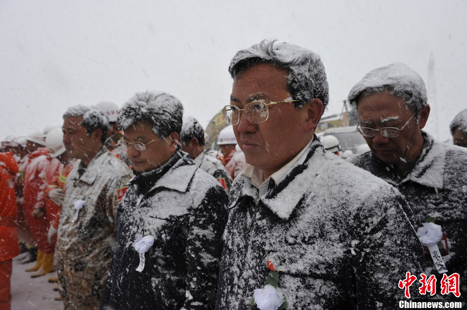 4月4日,清明节,也是拉萨3·29山体滑坡自然灾害遇难人员“头七”。西藏在事发地附近的斯布村前举行3·29山体滑坡自然灾害遇难同胞悼念仪式。中新社发 李林 摄