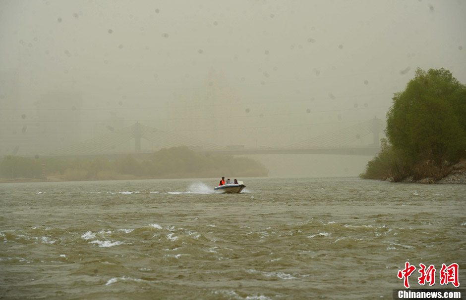 大风沙尘侵袭兰州 黄河岸畔水天一色