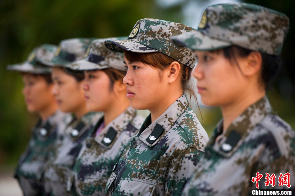 4月3日,博鳌亚洲论坛2013年年会即将在海南博鳌召开,隶属于海南某预备役师的博鳌连,于2001年3月在海南博鳌水城旅业有限公司编兵组建。自诞生之日起便肩负着安全保障及服务博鳌亚洲论坛相关区域的使命,连队连续12年出色完成博鳌亚洲论坛各项保障任务。图为博鳌连的女兵正在训练。中新社发 骆云飞 摄