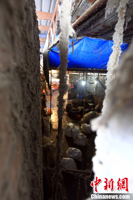 4月5日上午,上海松江沪淮批发市场活禽交易区被隔板封闭,缝隙中可见里面的部分场景。4月4日晚,上海市农委紧急部署H7N9禽流感防控措施,立即关闭上海该市场活禽交易区,扑杀交易区内所有禽鸟;对扑杀的禽鸟、禽鸟排泄物等进行无害化处理,彻底消毒市场环境。中新社发 潘索菲 摄