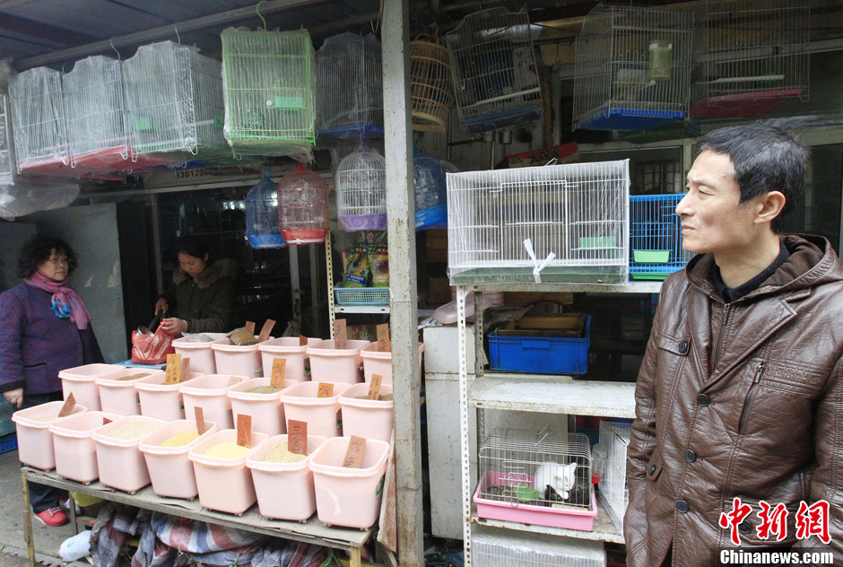 4月6日,受“上海暂停活禽交易,关闭所有活禽交易市场”的影响,当地闵行区一个花鸟市场里,鸟类买卖几乎全线跌停,只有零星的鸟食生意。店主表示,为配合政府防禽流感,他们已经暂停生意,将鸟全部移进室内,而鸽子是明文禁止销售的。中新社发 潘索菲 摄