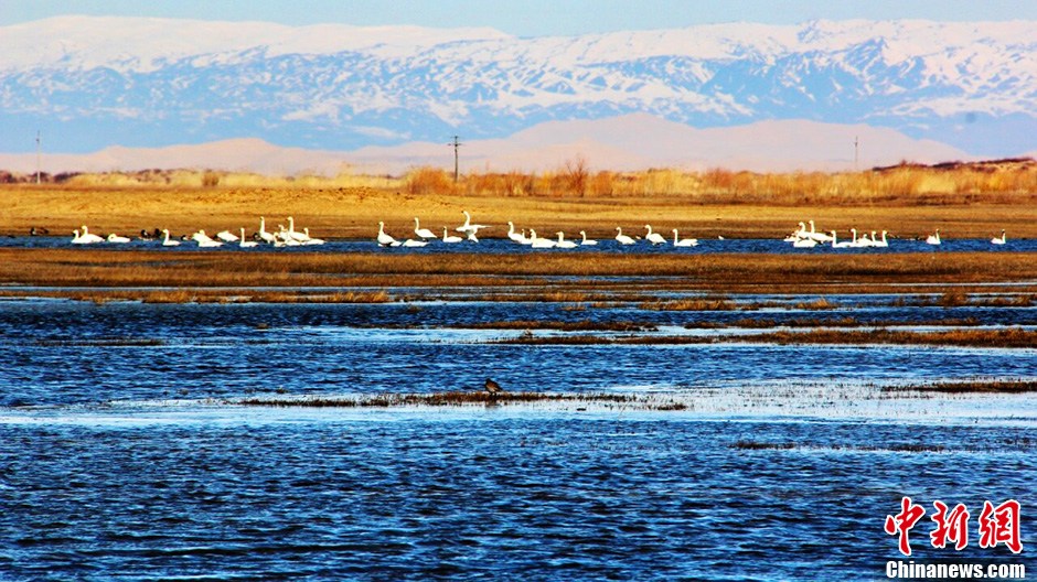 随春季到来,新疆哈巴河县境内的科克托海湿地自然保护区迎来数千只白天鹅、白鹭、野鸭等鸟类,给当地的春季带来了无限生动活泼的气息。4月6日,在哈巴河县科克托海湿地自然保护区境内,天鹅、白鹭、野鸭等候鸟正在成群结队嬉戏觅食。它们有的翩翩起舞、有的在空中飞翔、有的在水中小憩。洁白的白鹭、灰色野鸭与淡蓝色的水面、草地上牧民的牛羊和还未消融的冰雪构成了一幅生机勃勃的春晓美图。近年来,哈巴河县加大了对湿地的保护力度,大力发展生态农牧业,着力抓好天然林和天然草原保护、退耕还林、退牧还草等重大生态保护项目建设,自然生态环境得到有效改善,许多湿地恢复了往日生机,成为了鸟类的天堂。王宏山 摄