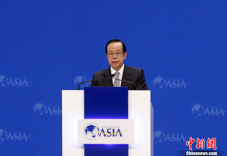 4月7日上午,博鳌亚洲论坛2013年年会开幕,图为论坛理事长福田康夫在开幕式致辞。他表示,希望博鳌亚洲论坛能够成为“正能量”的诞生之地。 中新社发 张浩 摄