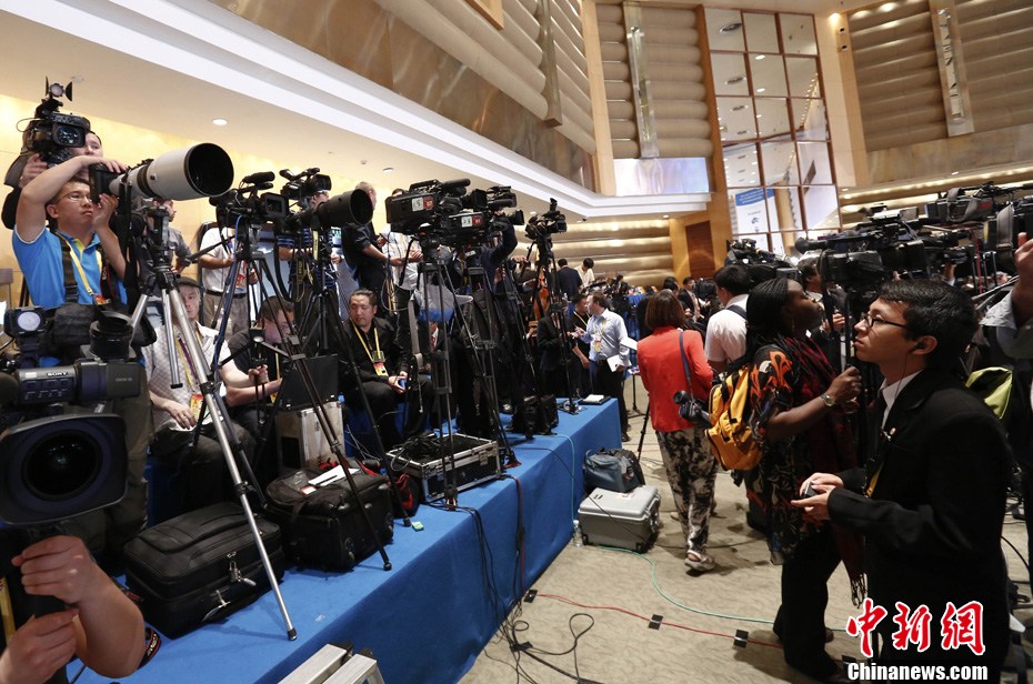 4月7日,博鳌亚洲论坛2013年年会开幕大会举行,图为众多媒体聚焦开幕大会。中新社发 张浩 摄