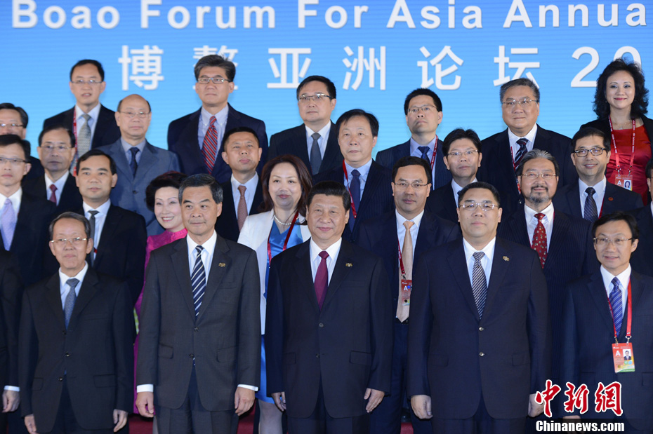 习近平与参加博鳌论坛的港澳特首和企业家代表合影