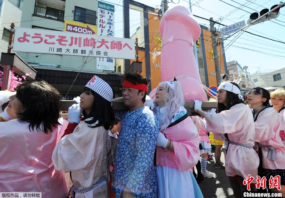 当地时间2013年4月7日,日本神奈川县举行男根节,人们簇拥在一个男性生殖器形状的神社旁。男根节可追溯到日本江户时代,那时男根节是日本川崎的妓女用来祈祷生意兴隆并免得疾病,而现在人们用来庆祝春天的到来,祈福健康、婚姻美满。