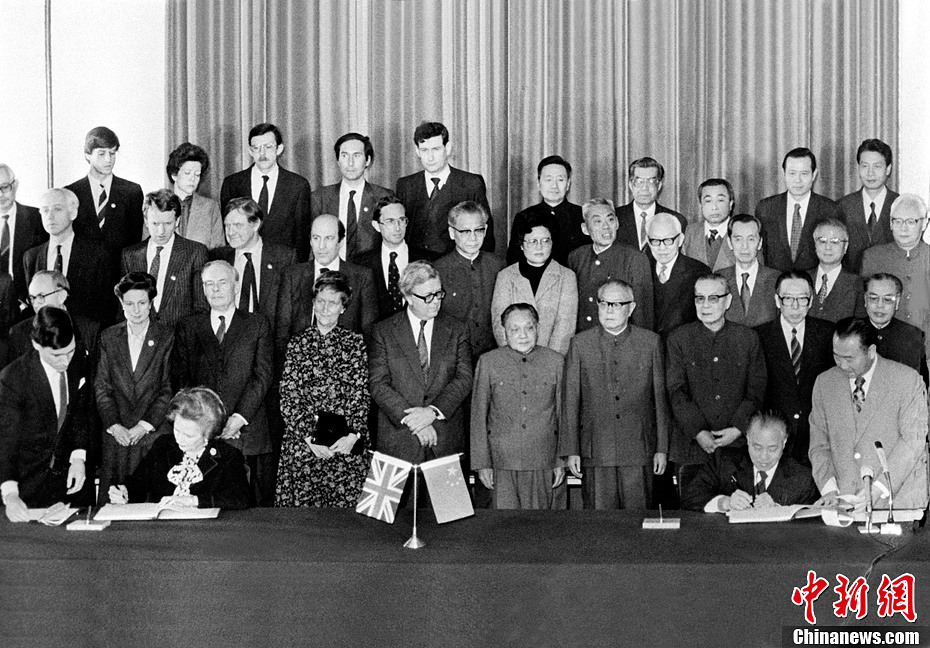 英国“铁娘子”、前首相撒切尔夫人8日去世,享年87岁。撒切尔夫人1979年至1990年任首相,是英国唯一一位女首相,也是英国20世纪连续执政时间最长的首相。图为1984年12月19日下午,邓小平与英国首相撒切尔夫人在北京人民大会堂出席《中英联合声明》签字仪式,共同声明:1997年7月1日,香港政权交接。中新社发