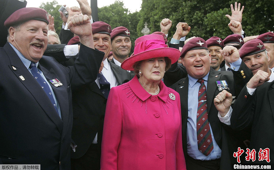 英国“铁娘子”、前首相撒切尔夫人8日去世,享年87岁。撒切尔夫人1979年至1990年任首相,是英国唯一一位女首相,也是英国20世纪连续执政时间最长的首相。图为2007年6月17日,撒切尔夫人与老兵在伦敦一起参加游行。