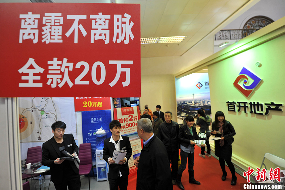 图为开放商推出“无霾”卖点房源吸引购房者。中新网记者 金硕 摄
