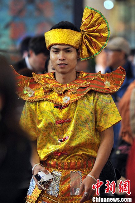 图为少数民族推销员。中新网记者 金硕 摄