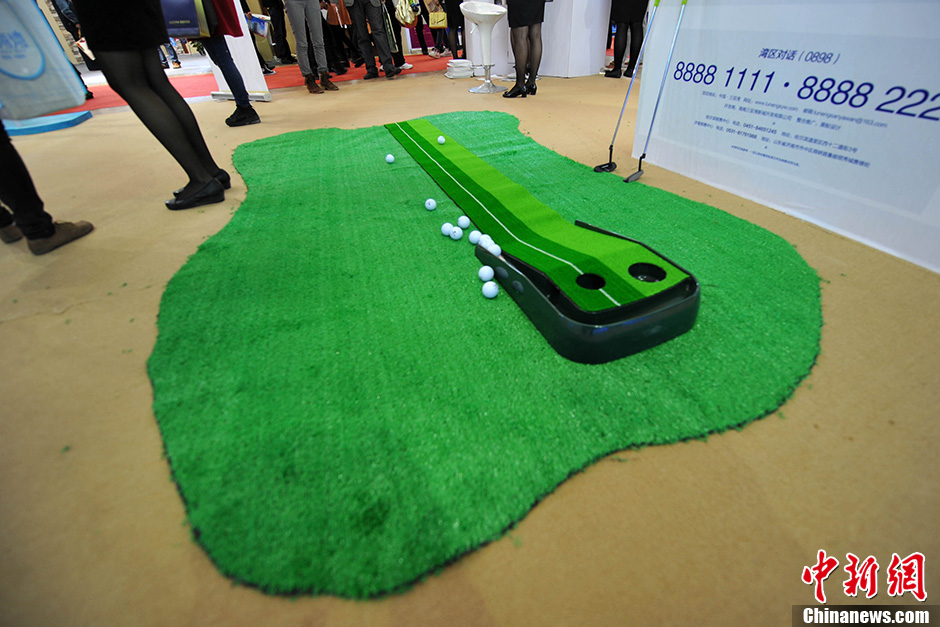 图为开放商为购房者准备的迷你高尔夫球练习场。中新网记者 金硕 摄